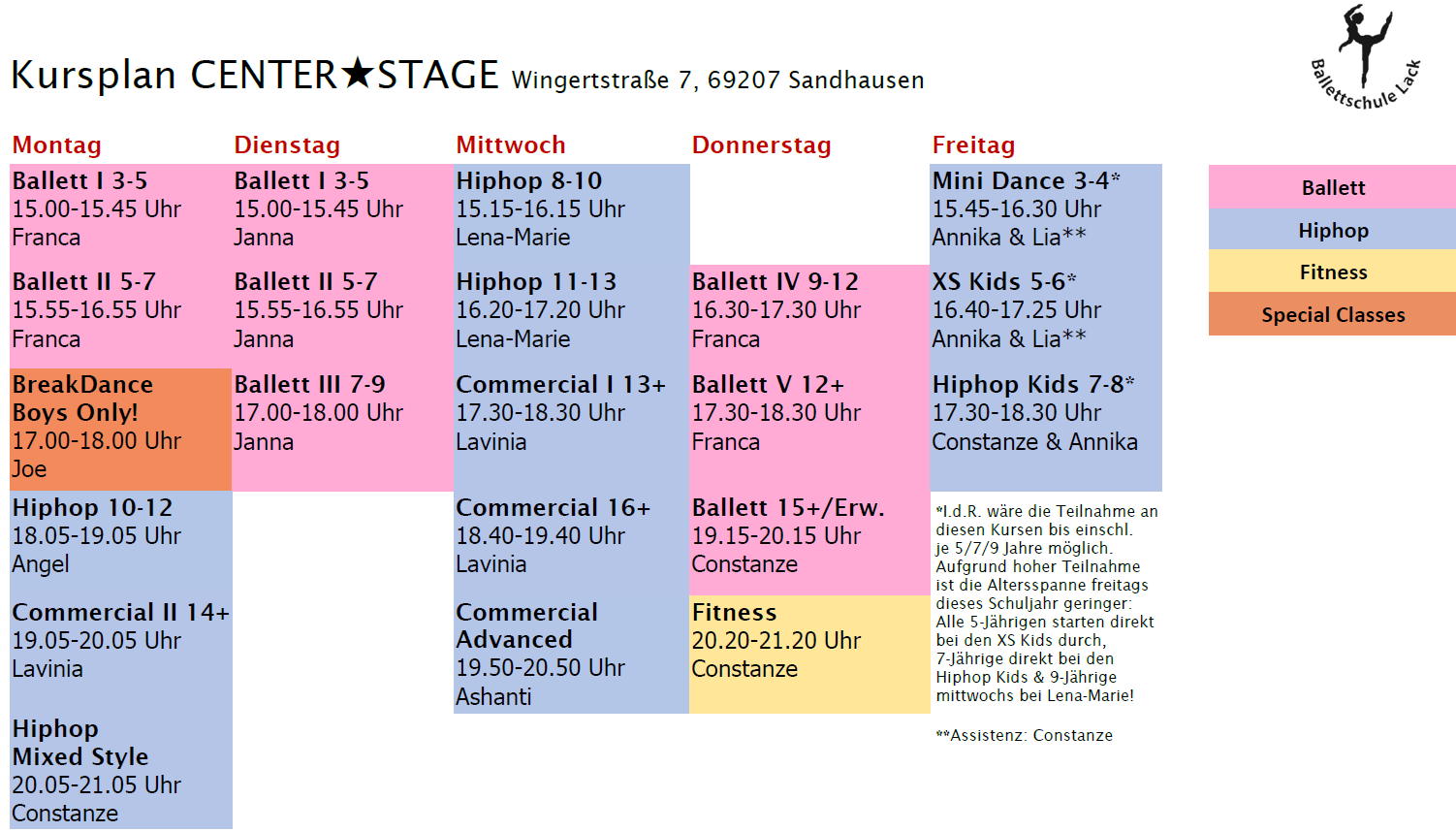 Osterferien (geschlossen): 28.03.-12.04.26, erster Kurstag: Mo, 13.04.26